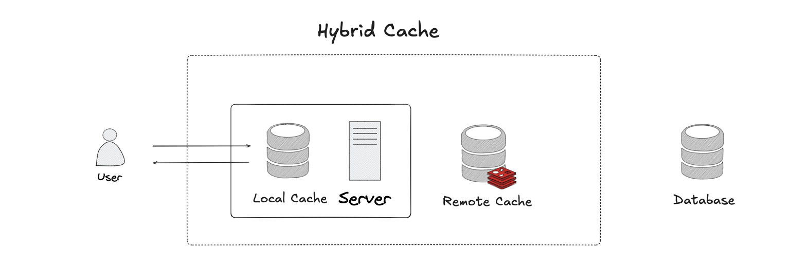 하이브리드 캐시는 쉽게 말해 로컬 캐시와 원격 캐시를 둘 다 사용한 구조를 말합니다. 저는 처음 하이브리드 캐시라는 용어를 보고 살짝 어려운 내용이 아닐까 겁을 먹었지만, 이해하고 보니 쉬운 내용이였습니다.