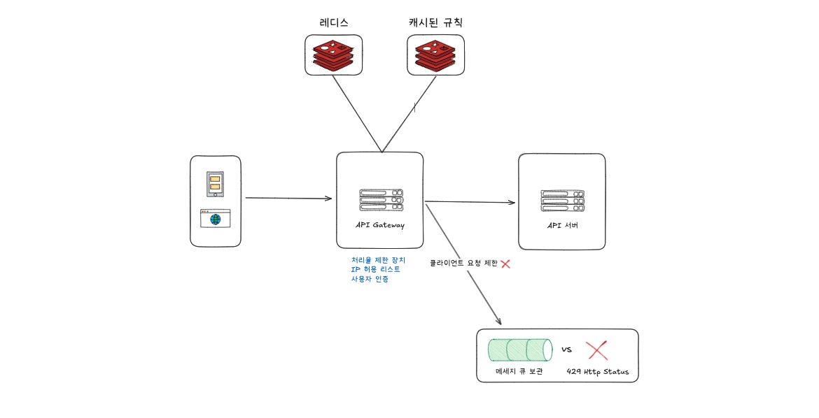 요청이 제한에 걸리면 HTTP 429(Too Many Requests) 응답을 반환하여 클라이언트에 요청이 제한되었음을 알립니다. - 메시지 큐 활용