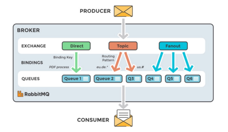 - Exchange는 Binding 정보를 바탕으로 메시지를 Queue로 전달