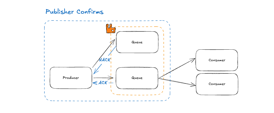 Producer가 메시지를 브로커에 전송한 후, RabbitMQ는 해당 메시지에 대해 ACK 또는 NACK 응답을 비동기적으로 반환하여 메시지가 실제 큐에 도달했는지 여부를 확인할 수 있습니다.