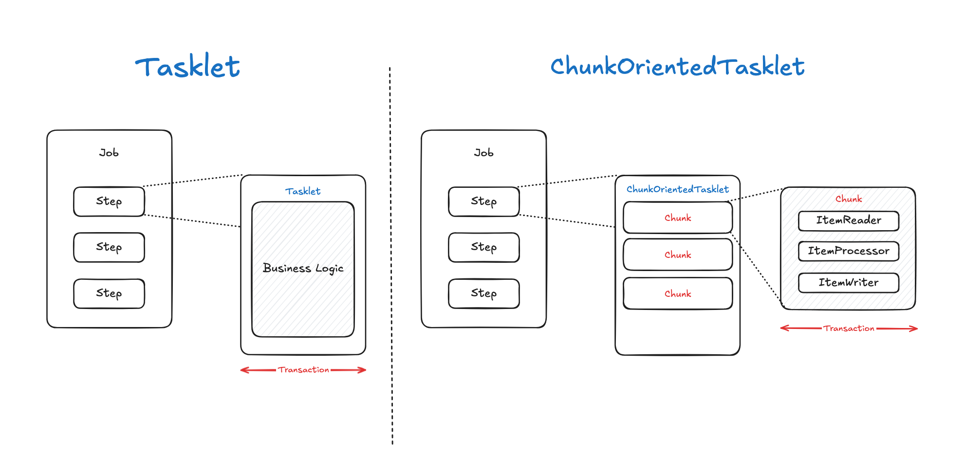 Spring Batch에서 Step은 크게 두 가지 방식으로 구현할 수 있습니다. (실제로는 더 많은 구현 방식이 있습니다.)