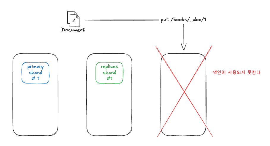 하지만 정말 큰 문제는 3번째 노드 입니다. 3번째 노드는 shard가 없기 때문에 Primary 저장도 Replicas 복제도 발생하지 않습니다. 즉 이러한 노드들은 클러스터로서의 이점을 전혀 살리지 못한 상황입니다.